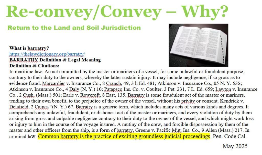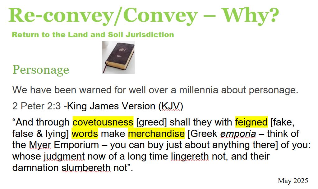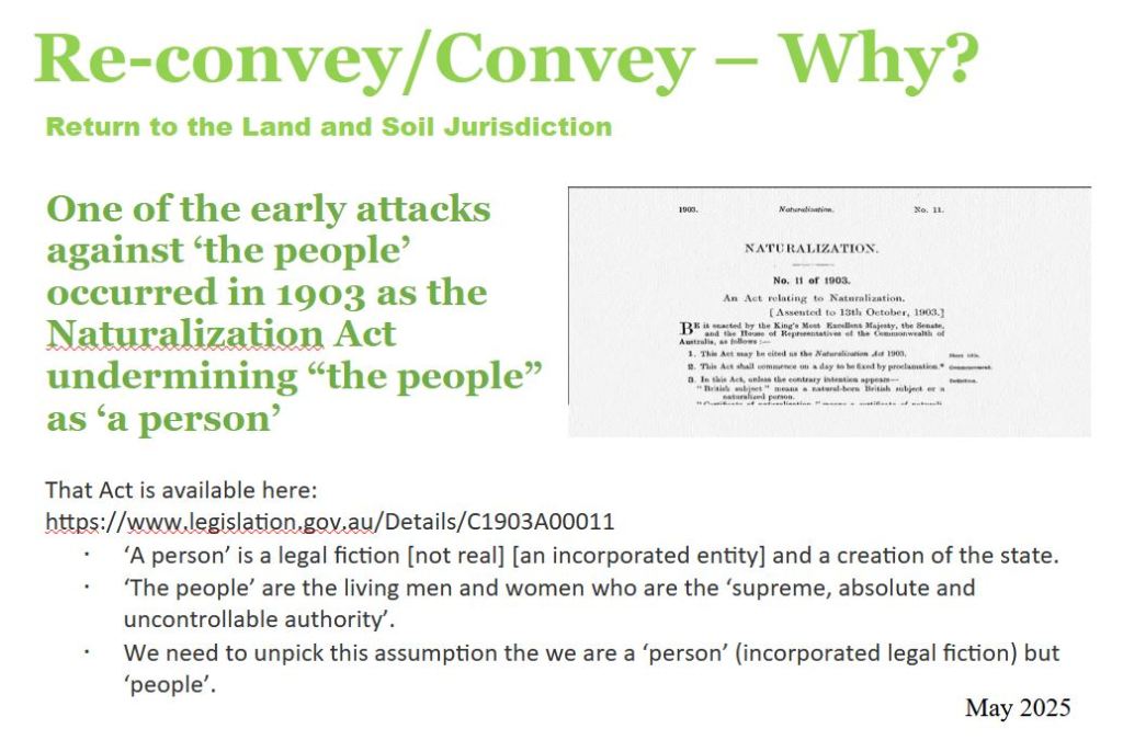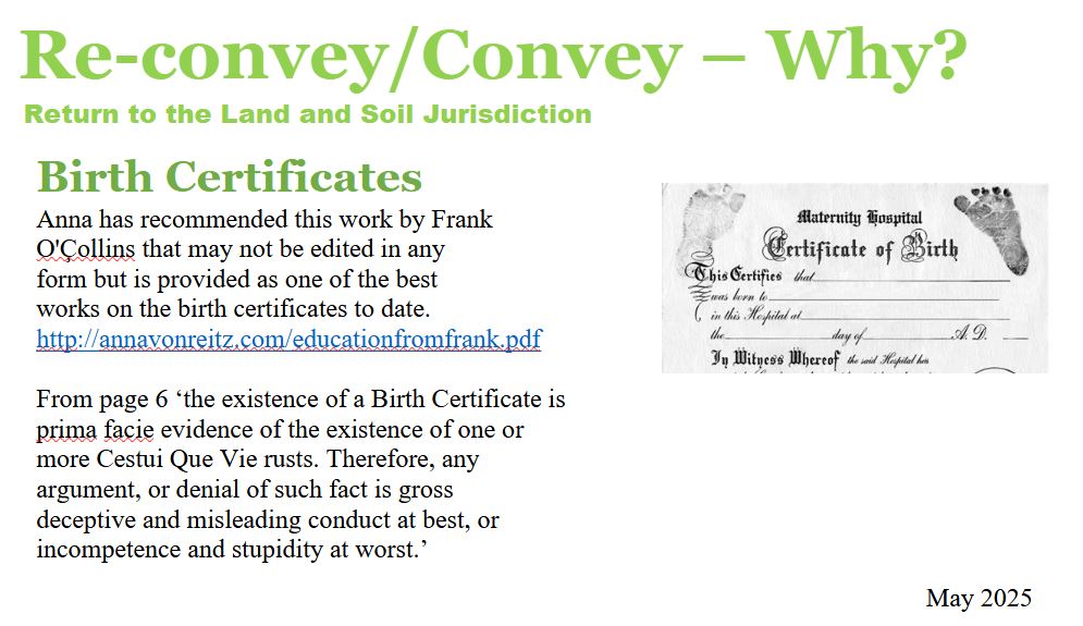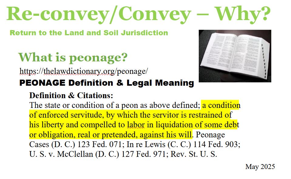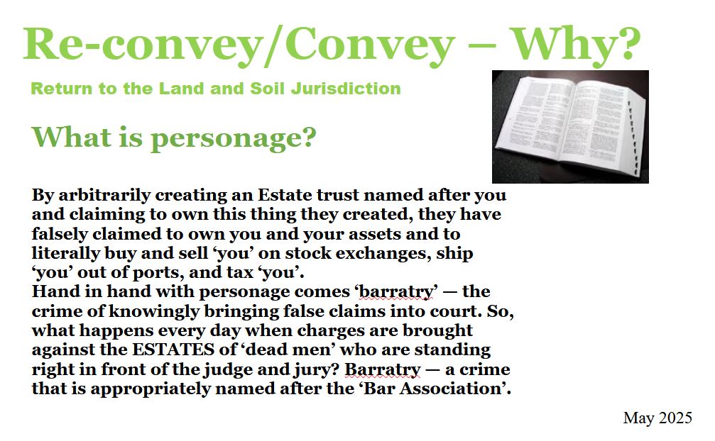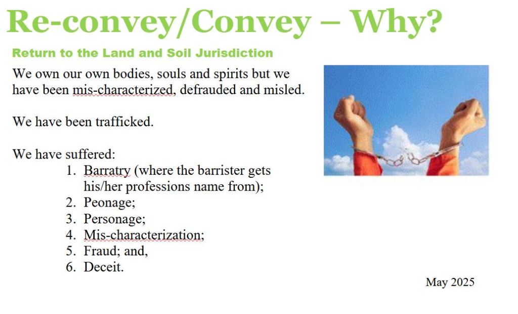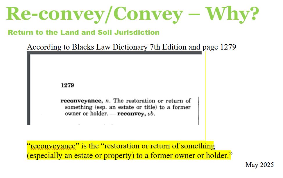 Correct your Status means to either Re-convey or Convey back to the Land and Soil Jurisdiction